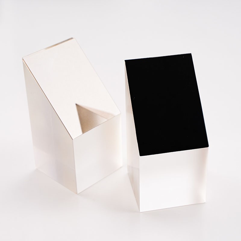半五角棱鏡是一種特殊的光學元件,它的結構特點是由五棱鏡對切而成,是光束定角度(通常為45°)轉向器件。半五角棱鏡具有許多優點,在應用中,半五角棱鏡常被用于望遠鏡等系統中,使光束實現固定的45°轉折。半五角棱鏡的反射面通常鍍有鋁膜,并加以黑漆保護,而其入射面和出射面則鍍有MgF2(氟化鎂)增透膜,以增強其光學性能。